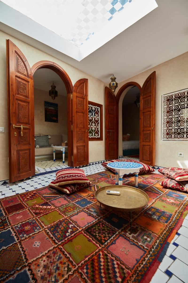 Riad Dar Celine propose un parking, une navette d'aéroport, en bord de mer, des chambres non-fumeurs, un service de chambre, une plage privée, l'endroit entier est le vôtre, 90 m² de taille, vue sur la mer, vue, douche, climatisation, cuisine.