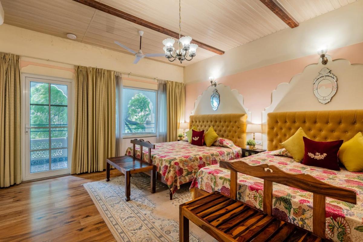 Dera Rawatsar - Heritage Hotel, situé à 1,7 km du Palais de la ville de Jaipur, propose des hébergements luxueux avec une piscine extérieure, un parking privé gratuit, des jardins luxuriants et un salon partagé. Profitez des équipements 4 étoiles tels qu'un coin salon confortable, des téléviseurs à écran plat avec chaînes de satellites, un coffre-fort entièrement équipé et une salle de bain privée avec un bidet, des articles de toilette gratuits et un coiffeur. Vous pourrez vous détendre sur la terrasse sur le toit, profiter d'une variété d'options de restauration, y compris un petit-déjeuner buffet, continental ou américain, et savourer des cuisines internationales préparées par des chefs qualifiés. Pour ceux qui cherchent à explorer la région, les vélos et les voitures sont disponibles à la location à proximité. L'emplacement de la propriété près de Jantar Mantar le rend idéal pour vivre le riche patrimoine culturel de Jaipur.