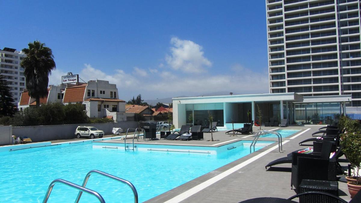 Le club d'appartements de lune de miel Océano, situé commodément près de Playa de Peñuelas à Coquimbo, offre une option d'hébergement confortable avec un balcon, un parking privé et un Wi-Fi gratuit. Accessible par une promenade de quatre minutes, ce complexe en bord de mer offre aux clients de nombreuses équipements tels qu'une piscine sur le toit avec vue panoramique sur l'océan, un centre de fitness ultramoderne et une réception 24/7 avec des professionnels dédiés à assurerconfort et satisfaction des clients.
