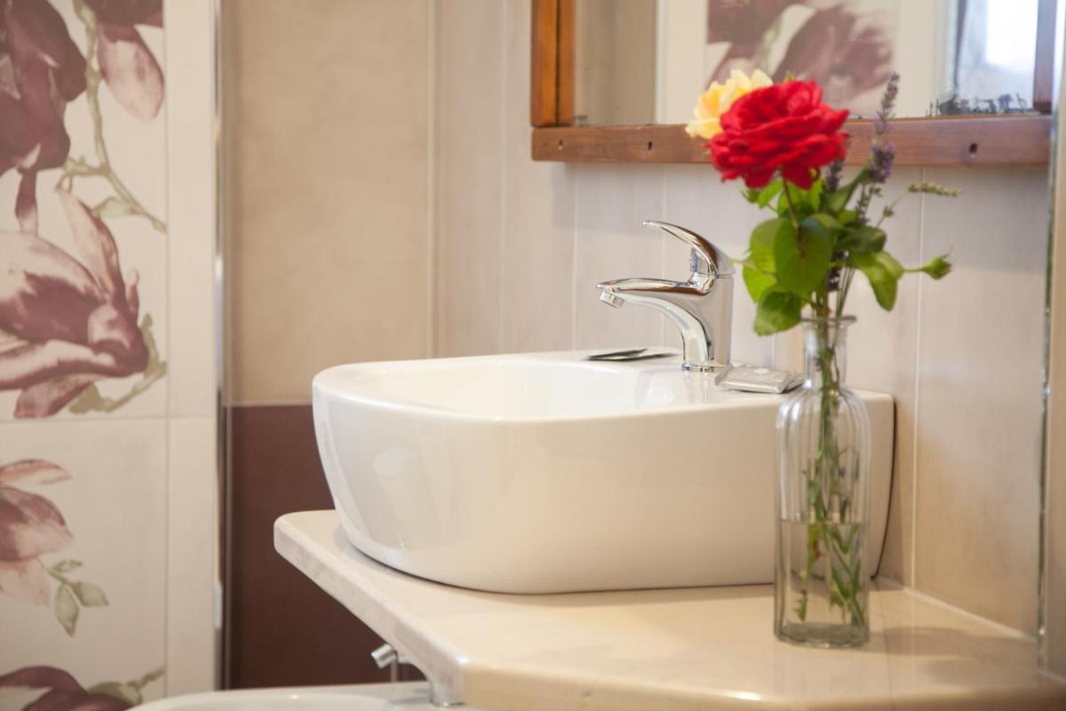 Chaque chambre de Le Peonie possède un accès privé, avec des lits en peluche et des équipements modernes tels que des téléviseurs à écran plat et des douches sans rendez-vous. Les clients savourent le confort et la commodité des salles de bains privées et profitent de l'ambiance sereine de leur propre sanctuaire personnel.
