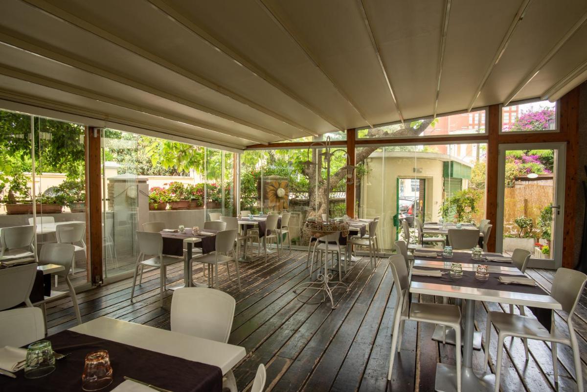 Un petit-déjeuner de style italien de boissons chaudes, des gâteaux faits maison et des articles plus sucrés est fourni quotidiennement, tandis que le restaurant sert des produits biologiques.