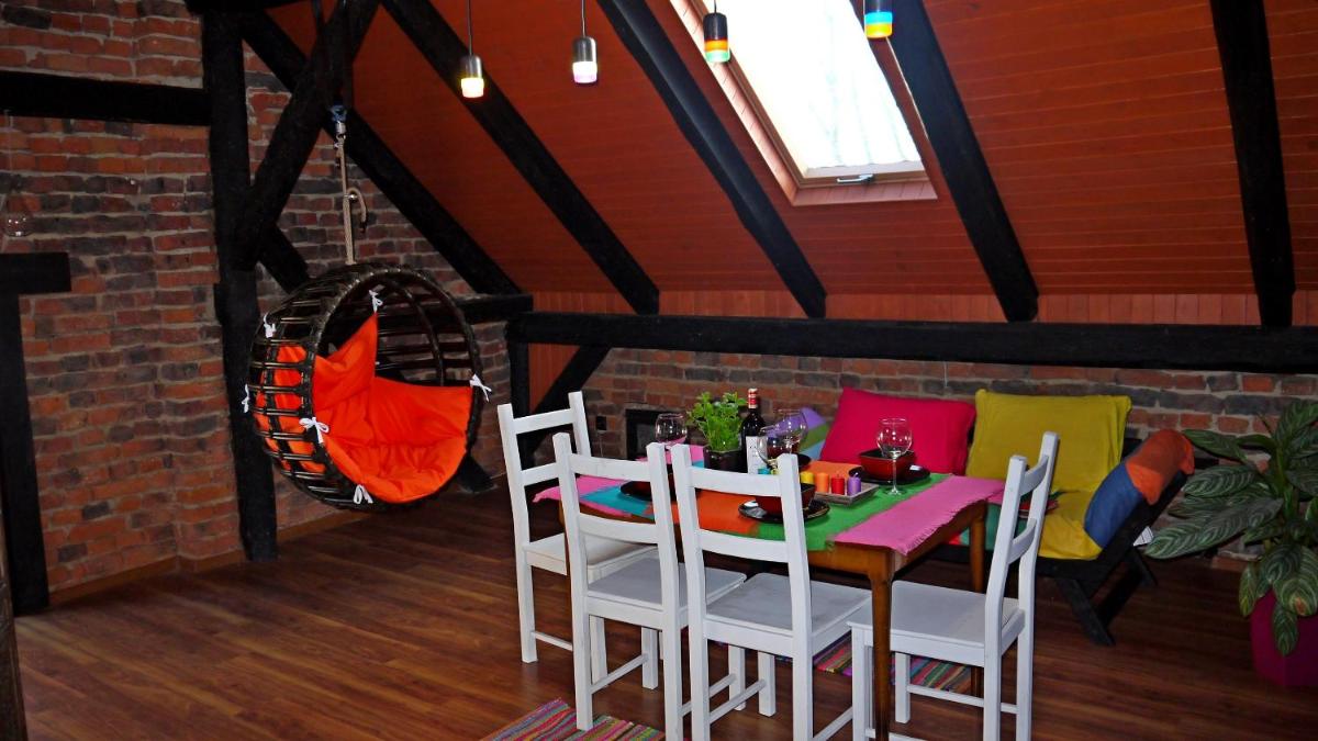 L'ancienne maison du grenier est située à Polakowice, à environ 14 km du Capitol Musical Theatre et du théâtre polonais à Wrocław. Ce charmant appartement construit en 1928 présente une disposition spacieuse de 1 chambre, avec une vue sur le balcon et le jardin. Les clients bénéficient d'une kitchenette bien équipée, d'une télévision à écran plat satellite et d'un accès WiFi. Profitez d'une ambiance confortable avec du vin et des fruits complémentaires à l'arrivée. Situé à proximité d'attractions telles que le mini-marché et l'aéroport de Copernic Wrocław, cet hébergement offre des équipements pratiques comme le Wi-Fi gratuit, un parking privé et un service de navette aéroportuaire payant.