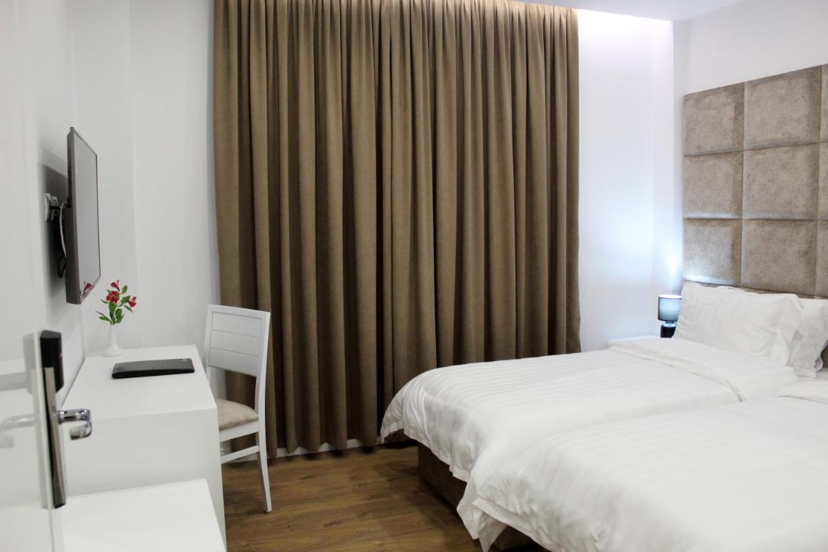 L'hôtel Ramel, situé au cœur de Tirana à distance de marche de Skanderbeg Square, propose une vue enviable du paysage urbain animé. Ce charmant établissement 3 étoiles propose une gamme d'équipements conçus pour améliorer votre séjour, y compris l'accès Wi-Fi gratuit, une réception 24h / 24 et des services de navette aéroportuaire complémentaires. Chaque chambre est équipée d'une salle de bain privée confortable avec un bidet et des articles de toilette gratuits, ainsi qu'une télévision à écran plat, une climatisation et une option de terrasse pour ceux qui recherchent une détente extérieure. Les clients peuvent profiter d'une variété d'options de restauration, comme des restaurants populaires à proximité comme Bunk'art et le National Museum of History Albanie.