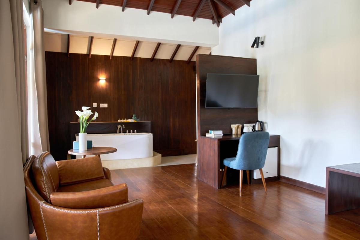 Seahorse Hotel & Spa, situé commodément près de Negombo Beach, offre des hébergements confortables avec une vue privilégiée sur la mer. Cet établissement 4 étoiles comprend une piscine extérieure, un parking privé gratuit, un jardin luxuriant et une terrasse charmante, ce qui en fait une retraite idéale pour les voyageurs à la recherche de la détente et du confort. Chacune des chambres climatisées est équipée d'équipements modernes tels que l'accès Wi-Fi gratuit, garantissant la commodité pendant le séjour. Le service de chambre est facilement disponible, permettant aux clients de profiter rapidement des repas sur demande. Les clients apprécieront la kitchenette bien équipée offrant une théière électrique, parfaite pour préparer une tasse de thé ou de café.