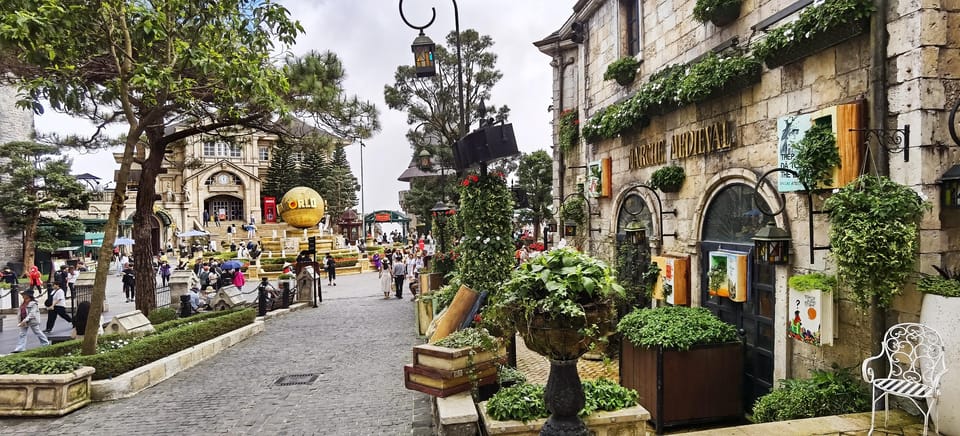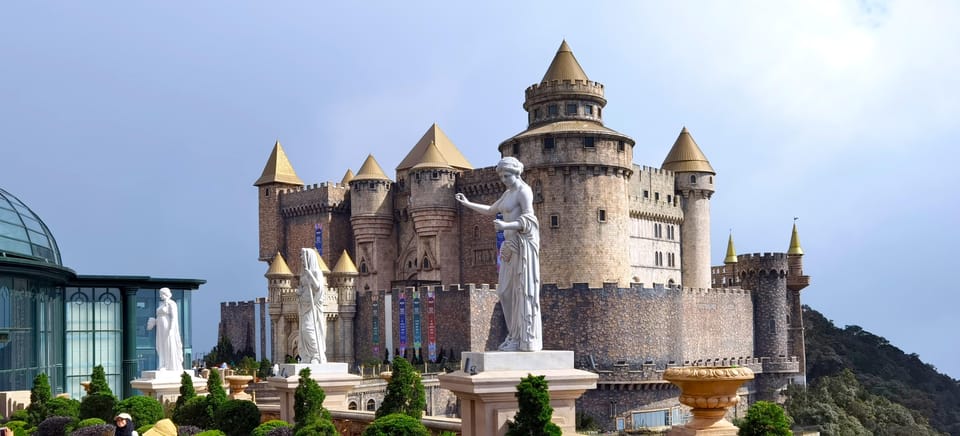 À partir de l'après-midi, notre visite guidée commence avec une prise en charge de l'hôtel suivie d'un voyage dans la région pittoresque de Bana Hills via le système de téléphérique King Mountain de pointe.En atteignant le sommet, les invités sont accueillis par une vue impressionnante - le pont doré, sa conception distinctive symbolisant le soutien divin pour le pont vietnamien.Cette structure emblématique se distingue par le contexte des paysages verdoyants, offrant une vue panoramique sur le littoral de Da Nang ou en fournissant un répit serein au milieu de la beauté éthérée des cieux et des forêts émeraude remplies de nuages.